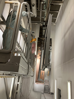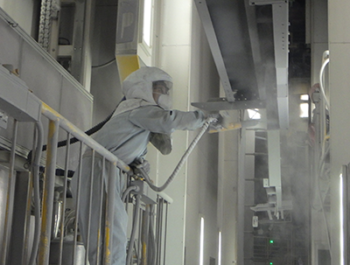 塗装工程がある建屋は大型乾燥炉があり、夏場のブース内温度が40℃を超えることがあります。作業員は防護服とエアラインマスクを着用するため、顔は涼しいものの、上半身は汗でびっしょりになるほど厳しい状況でした。