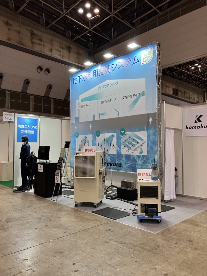 ブースでは室内可動タイプ(GAM)の2機種を展示します。小型スポットクーラータイプのGAM-1802Fには地下水を模した冷水を実際に循環させてその冷風効果を体感できます。